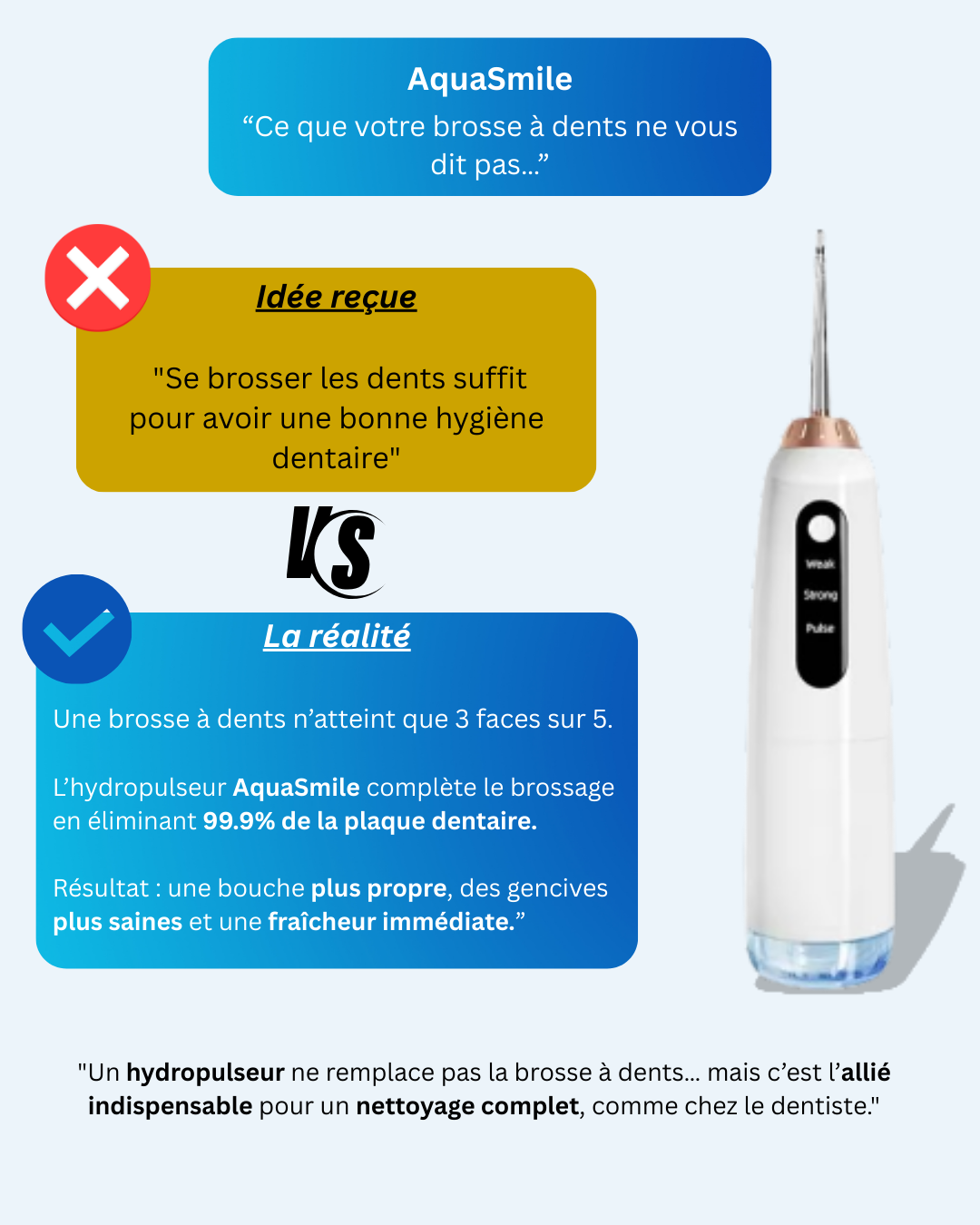 👉 Avec AquaSmile, votre brosse à dents devient enfin complète. Ensemble, ils forment le duo parfait pour garder un sourire éclatant, jour après jour.